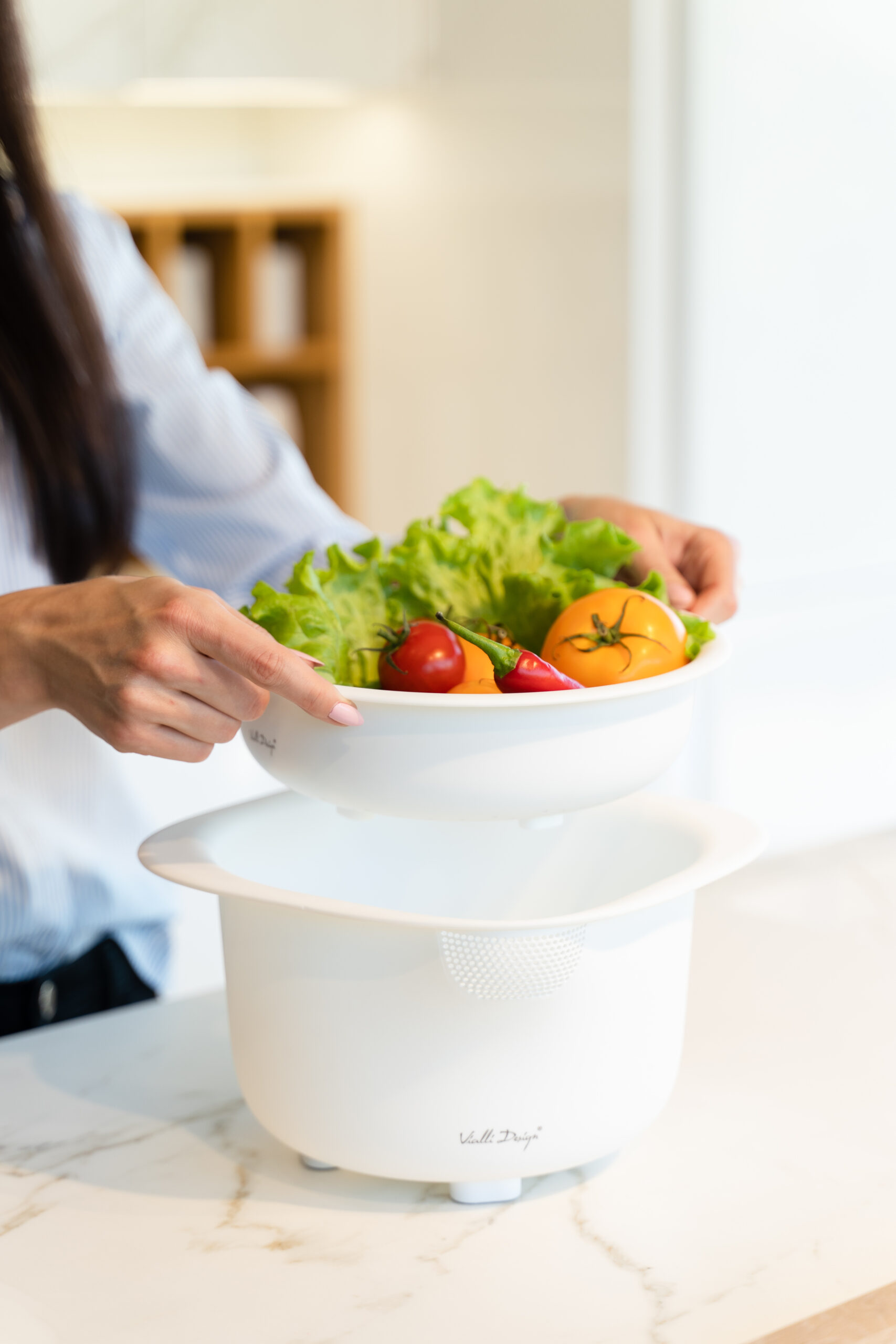 Set of 3 kitchen bowls Livio white/grey 28340