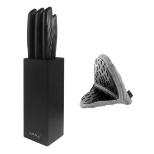 Zestaw 5 noży w bloku CARO czarny z szarą rękawicą kuchenną LIVIO 0497
