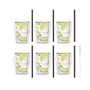 Zestaw 6 szklanek Amo 400ml i 6 słomek szklanych 20cm czarnych 7152