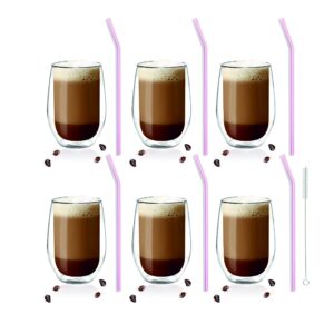 Zestaw 6 szklanek Amo 400ml i 6 słomek szklanych 23cm różowych 7176
