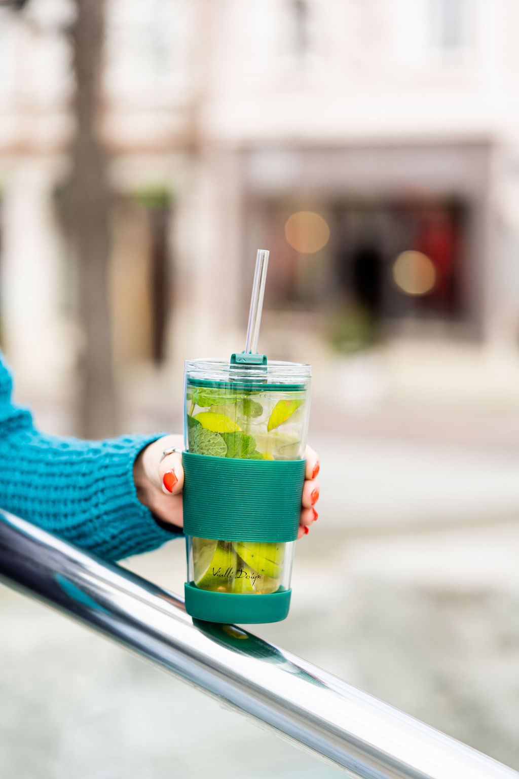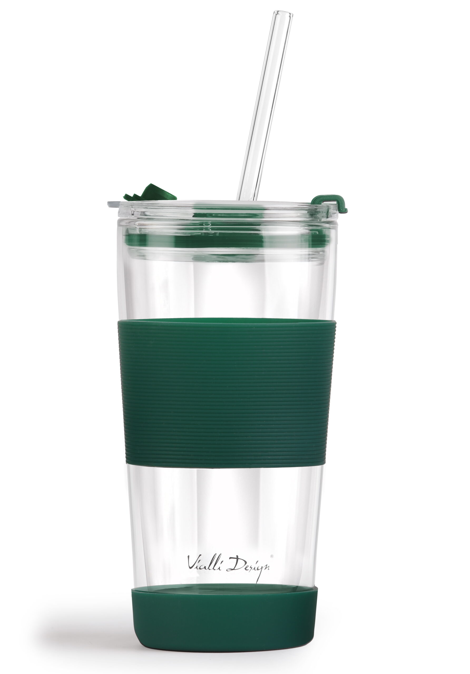 Kubek termiczny szklany ze słomką 600 ml zielony Fuori 30398