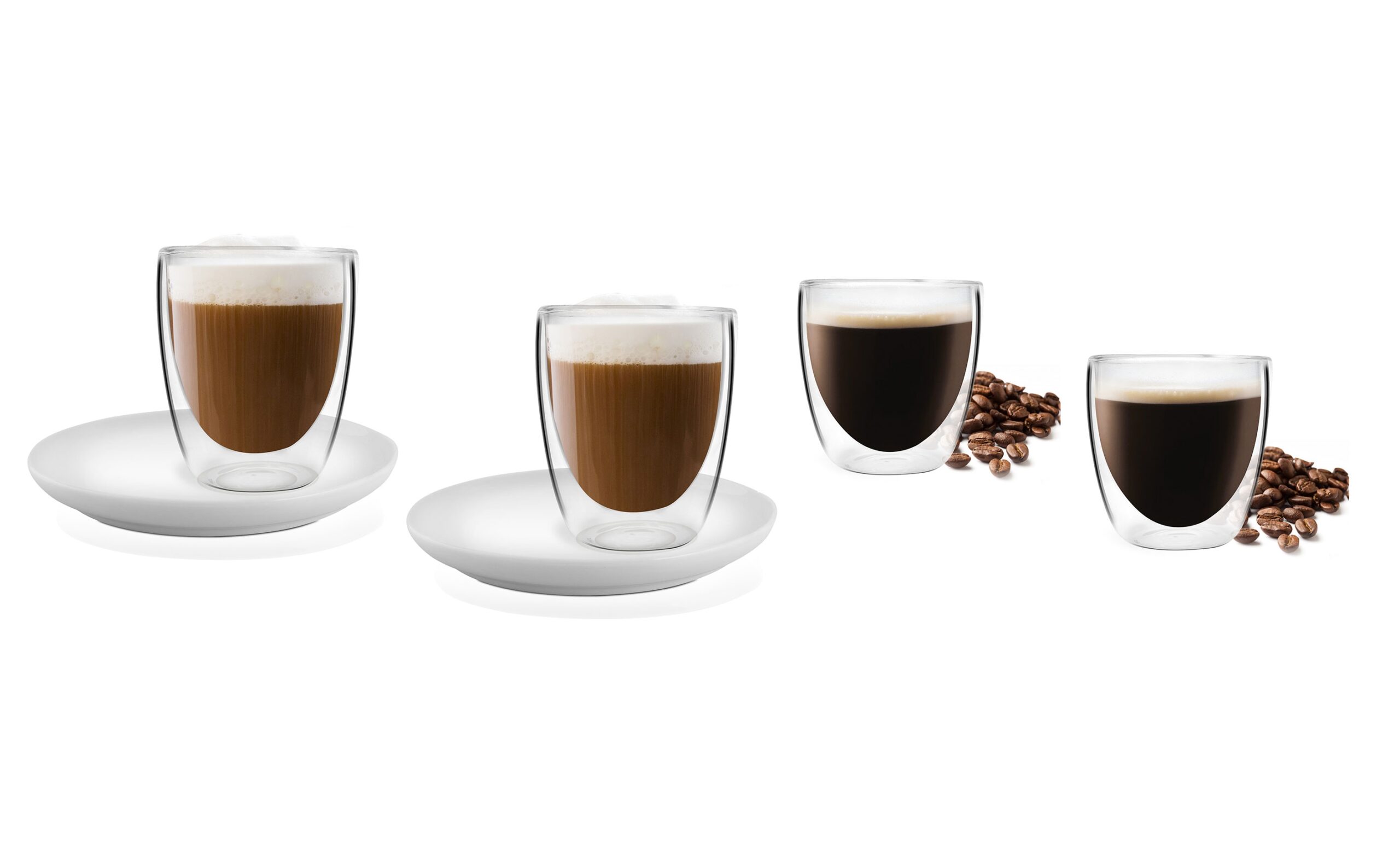 Zestaw 4 szklanek z podwójną ścianką z 2 podstawkami Amo 24878