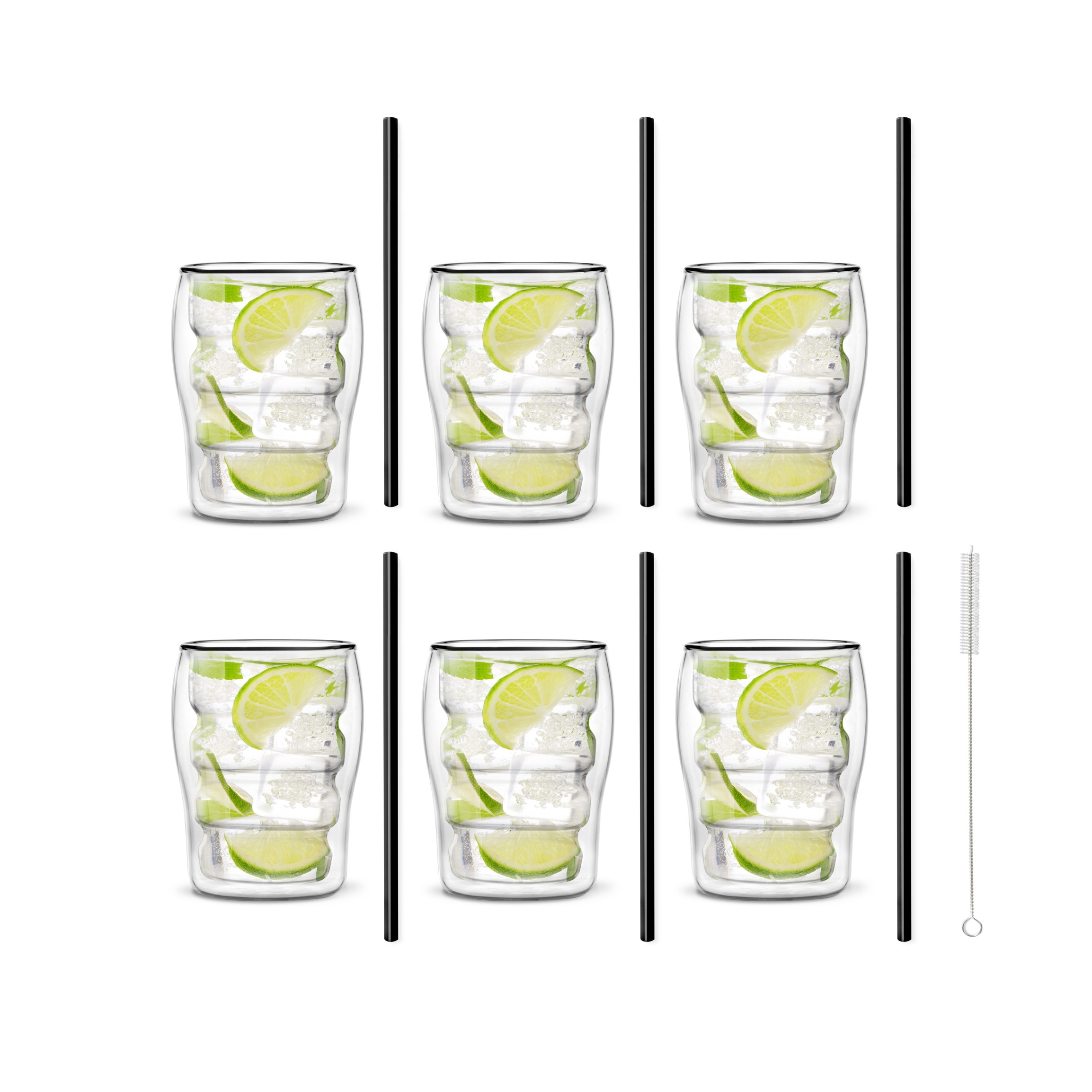 Zestaw 6 szklanek Bolla 300ml i 6 słomek szklanych 20cm czarnych 6971