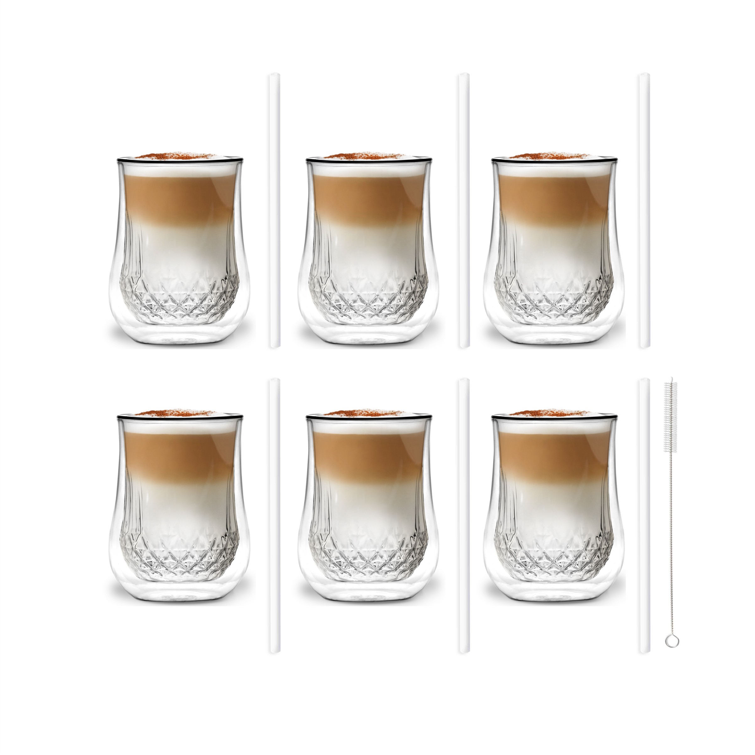 / Zestaw 6 szklanek Diamante 300ml i 6 słomek szklanych 20cm białych 7046