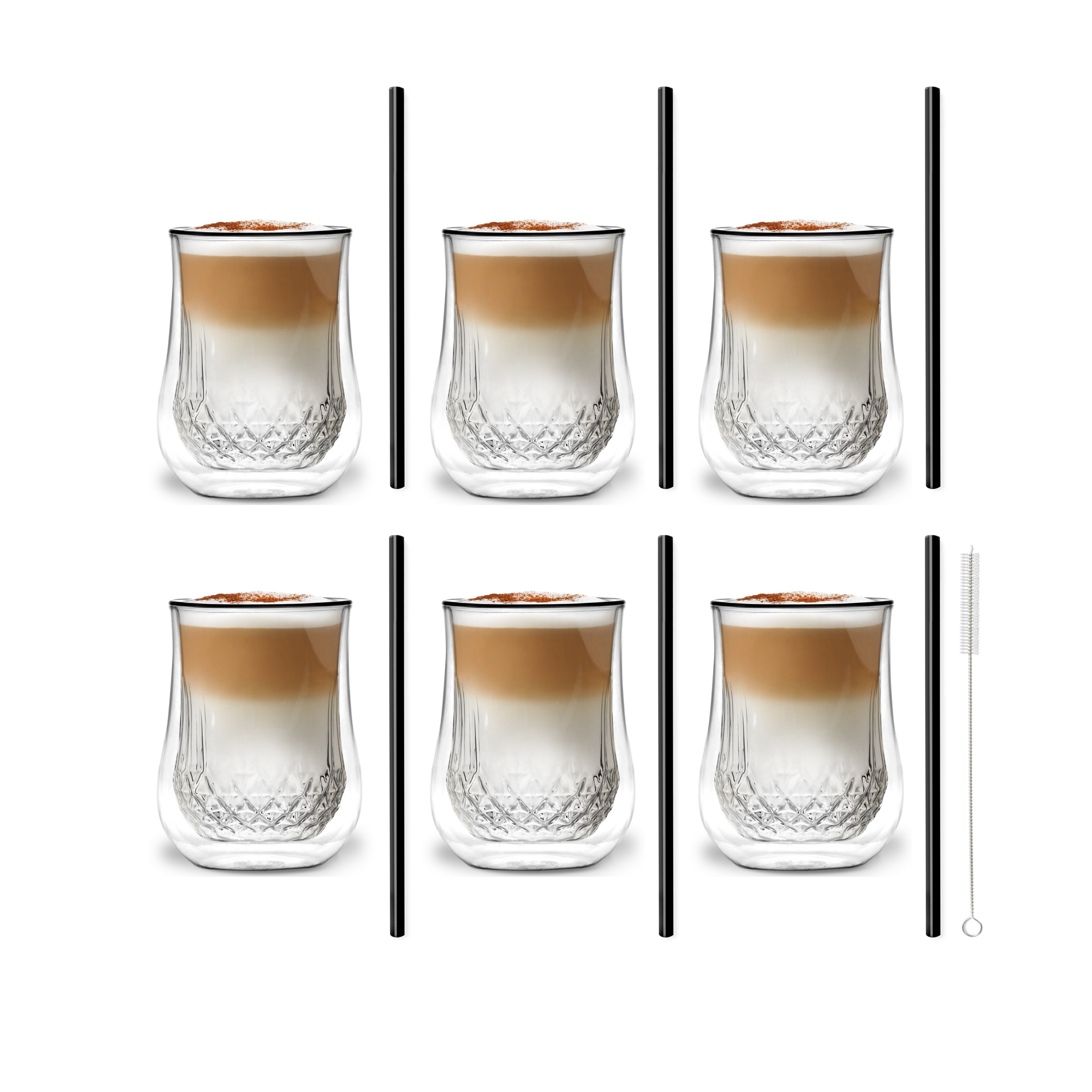/ Zestaw 6 szklanek Diamante 300ml i 6 słomek szklanych 20cm czarnych 7039