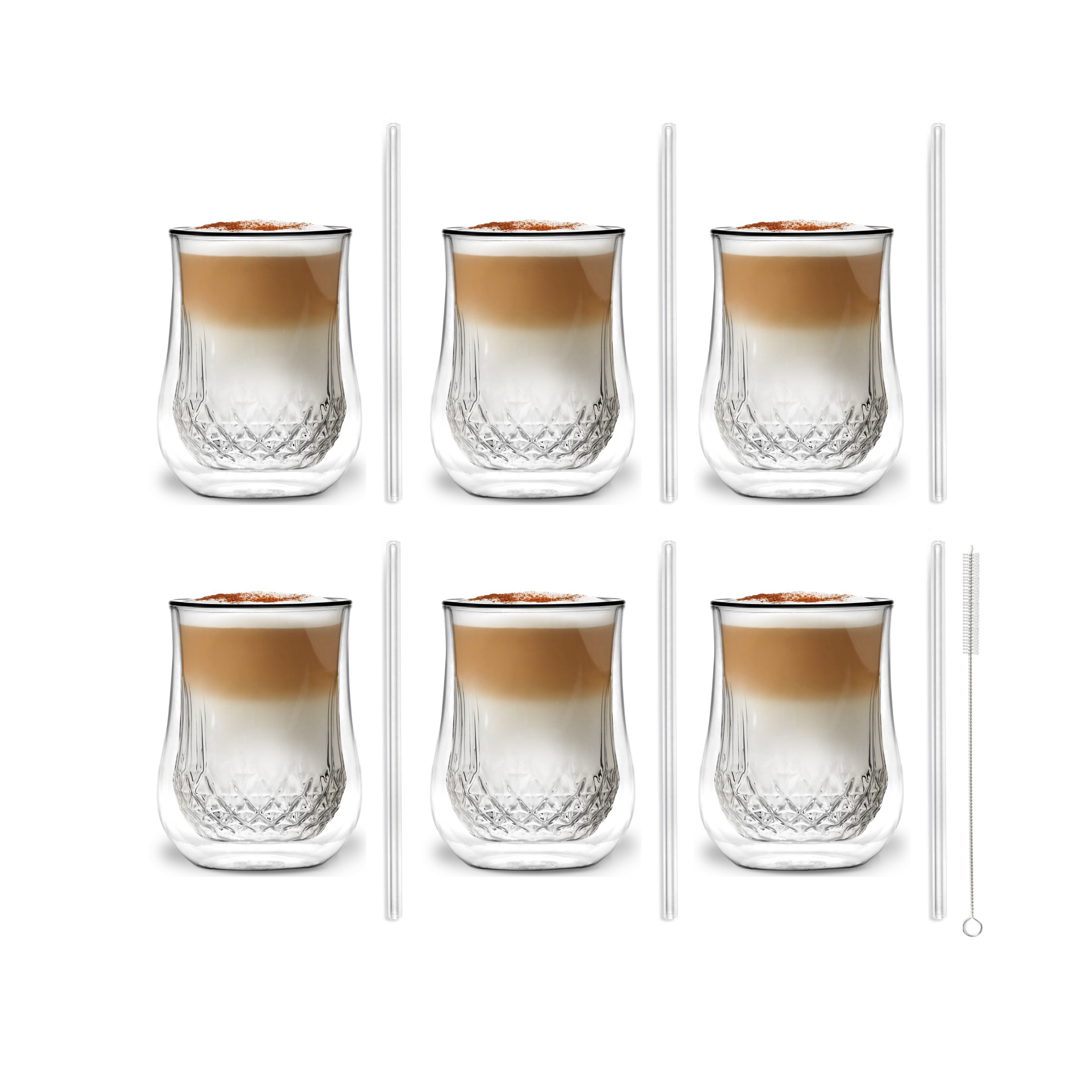 Zestaw 6 szklanek Diamante 300ml i 6 słomek szklanych 20cm transp 7022
